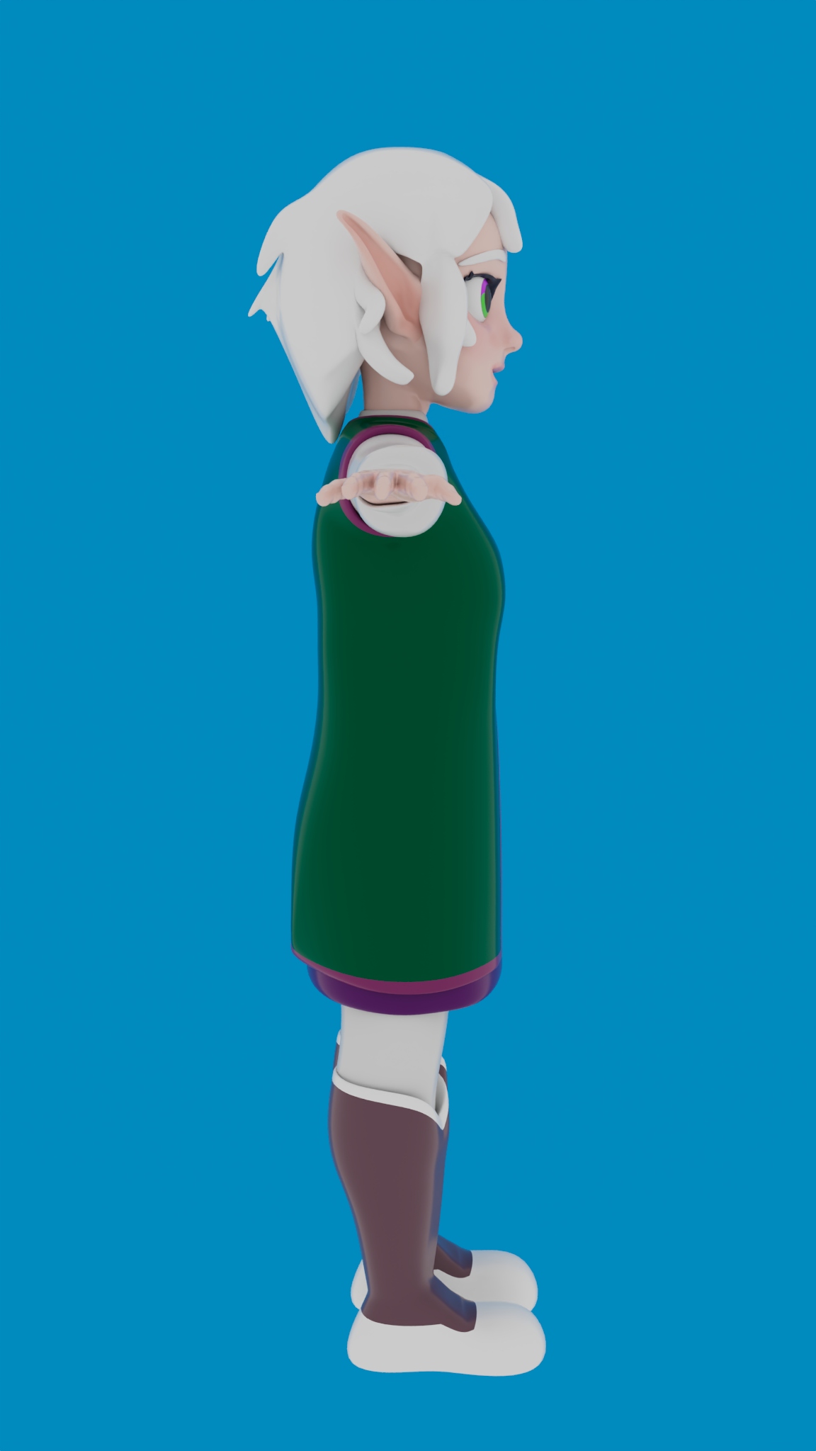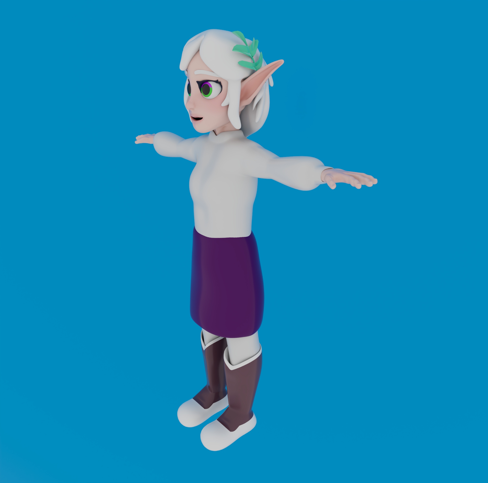 The main model is Elvyria. She is the elven wizard protagonist of an RPG fantasy open-world game. The game centers around the power of curiosity and kindness. There will be moments of the game where these two traits become disadvantageous (Elvyria’s curiosity leads to taking dangerous risks and her kindness can be exploited). However, the advantages of these two traits will outweigh the disadvantages (curiosity leads to making important discoveries and kindness leads to valuable allies). I chose kindness as one of the traits to focus on, because it sometimes can be taken for granted or viewed as a weakness. Additionally, I took a fairytale class that told me female characters in fairytales are generally punished for curiosity (think Sleeping Beauty investigating a spindle and falling into slumber), so I wanted to portray a female character whose curiosity is beneficial overall.