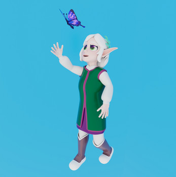 The game will begin with Elvyria outside. There are many butterflies, but one butterfly is unusually colored. The colors for this unusual butterfly are meant to feel ethereal, strange, and a little dark, because it is related to the magical disturbance. Elvyria follows it out of curiosity and it leads her to the first main magical disturbance. The butterfly will stick around Elvyria for the course of the game. The game purpose of the butterfly is to guide the player to the next destination or fly around points of interest. When not near anything of major importance, the butterfly will fly around Elvyria or rest on her head, to encourage exploring areas without following the butterfly all of the time.